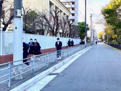 風紀委員会の皆さんご苦労様です。ほとんど予鈴登校完了、生徒たち頑張っています。