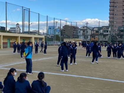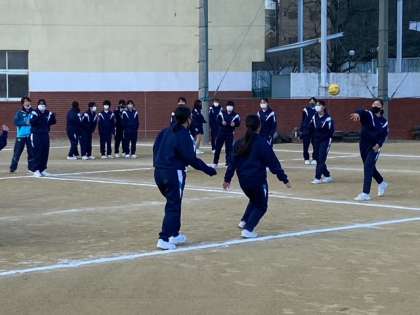 3年最後の行事の球技大会ドッヂボールが男女別で実施しました。かなり寒い中で熱く戦っていました。楽しそうです。