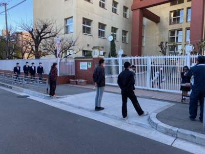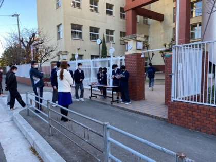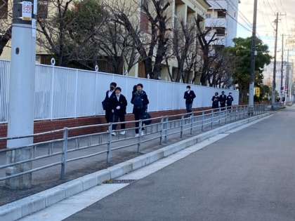 寒い中元気よく登校しています。さわやかなあいさつで、学校が始まります。
