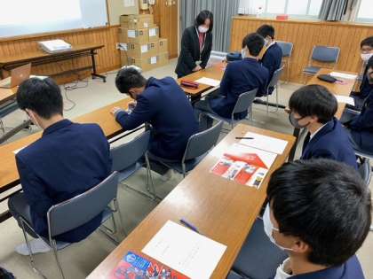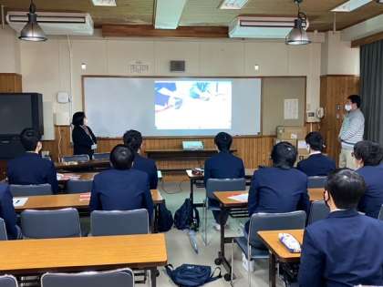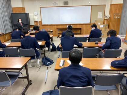 泉尾工業高校から学校説明がありました。公立高校の様子や就職先など具体的によくわかりました。毎日休まず遅刻しないことの繰り返しの大切さを学びました。ありがとうございました。