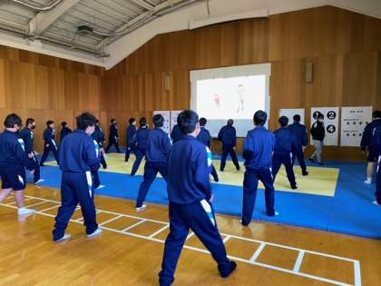 体育はダンスです。ビデオに合わせて楽しく踊っています。英語も社会も頑張っています。