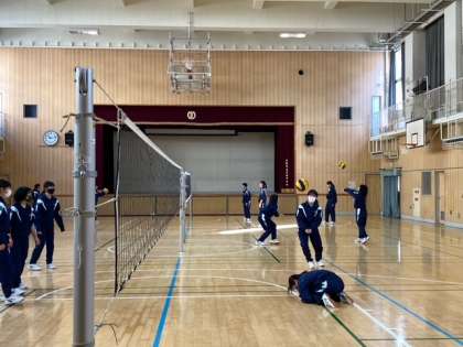 女子体育はバレーボール、男子は体力測定、数学の授業です。