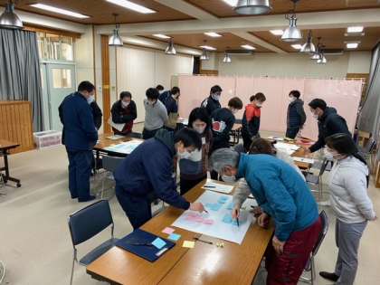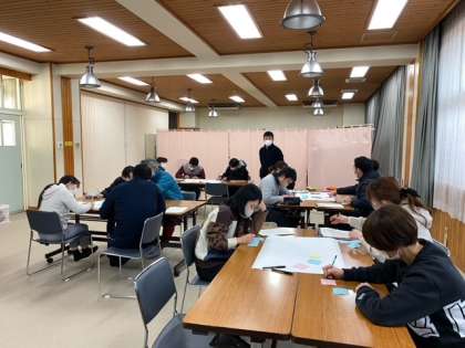 理科の研究授業について教員研修で、授業方法の研究をしています。ワークショップ研修が楽しくできました。