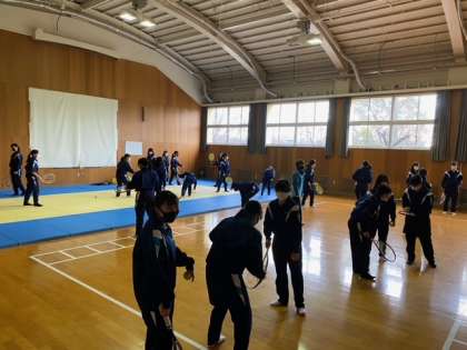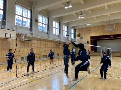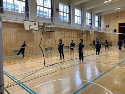 男子はバレーボール、女子はバドミントンを楽しく楽しくプレーしていました。卒業まで8日です。