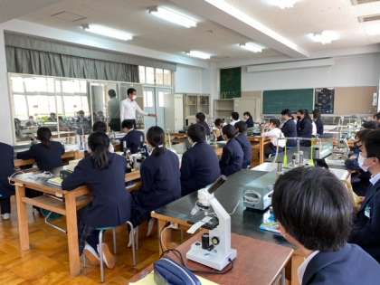 理科は顕微鏡の実験、保健はオリンピック、パラリンピックの話です。楽しく学習しています。中学校にも慣れて、規律があります。素晴らしい。