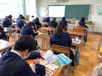 社会は明治時代の地租改正、英語は教科書の復習、国語はこれからのシラバスを聞いています。