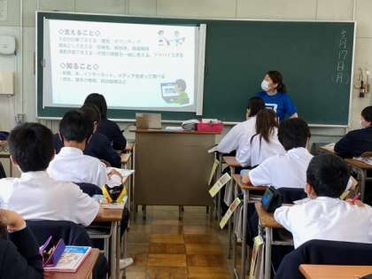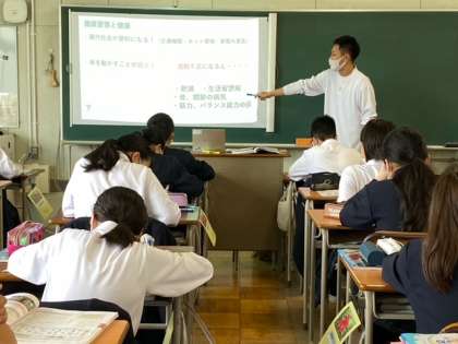 保健の授業で、行事やボランティア活動で支え合うことや情報収集の学習、健康生活について、学習しています。英語は英会話ん中心に楽しく学んでいます。