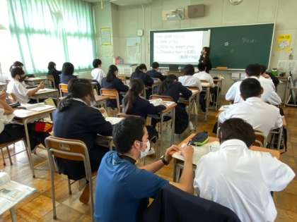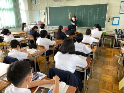 理科は生物の分類をグループで考えマナボードで発表しています?保健は挫折から希望へのお話、英語はあいさつの英会話を学習しています。みんなしっかり頑張っています。