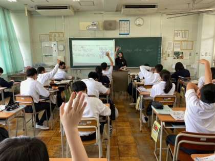 理科は植物の特徴と分類、社会は排他的経済水域の学習、英語はリスニングの質問に思いっきり手をあげています。いいね!