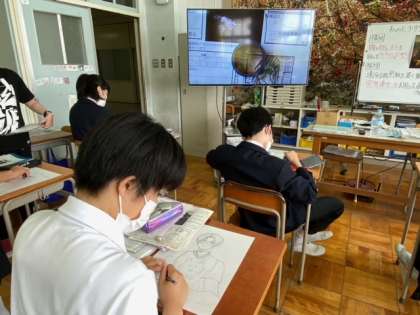 2年生です。男子体育は自主的に声をかけて、よく考えてバトン練習をしているところが素晴らしい。美術は作品に自信を持って取り組んでいる姿が美しいです。真住の生徒たち頑張っています。