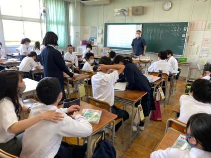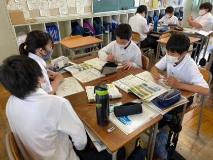 社会は雨温図を貼りつけています。英語はto+動詞のゲーム、国語は結論について学んでいます。