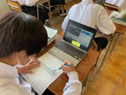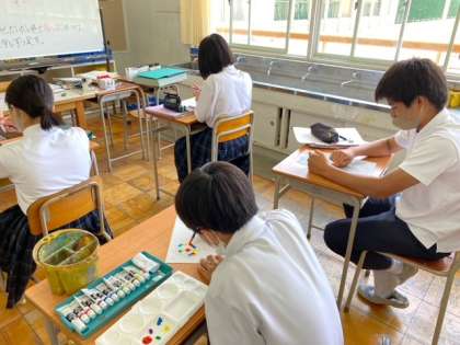 音楽はみんなの歌に出てくる、めだかの学校や小さい秋見つけたなど情緒豊かな学習です。美術は集中して作業に取り組んでいるところ、社会は広島のことをタブレット端末で集中して調べています。