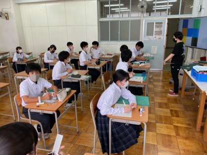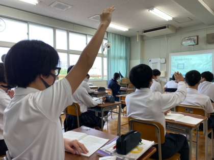 国語はテストの解説、数学は図形の面積、美術は色彩です。頑張っています。