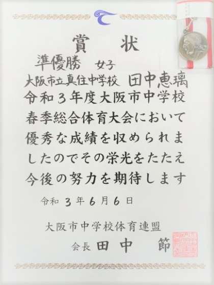柔道の部で、3年生の田中恵璃さんが準優勝という快挙を成し遂げました。