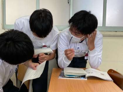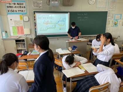 3年生英語です。教科書の九州の地下鉄をテーマに英語で案内をしています。