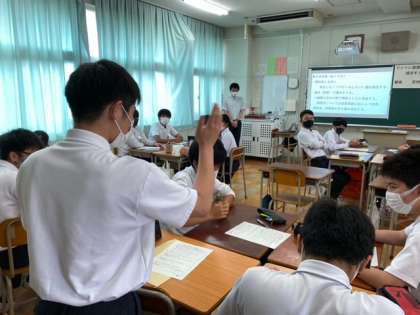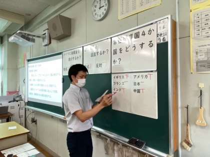 第1次世界大戦の後の国際連盟の常任理事国を、説得力ある根拠を示して熱弁した後、投票で決めました。最後の質問もよく、パフォーマンス課題を見事に生徒たちがやりきりました。思考力の深まりを感じました。