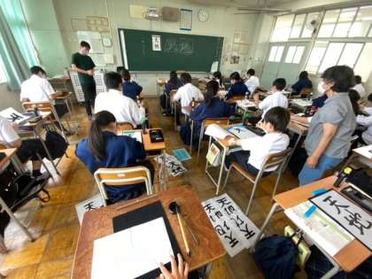 社会は旧石器時代の学習、理科はアンモナイトなど化石の話、習字は毛筆です。