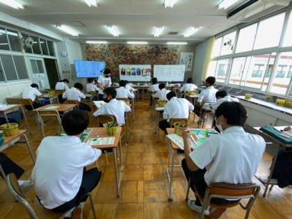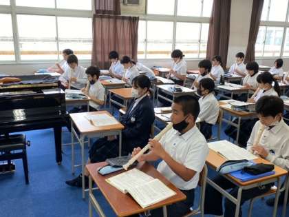 音楽は嵐の曲をリコーダーで練習しています。数学は文章題の連立方程式を元気に解いています。美術は私のモナリザに色を塗っています。