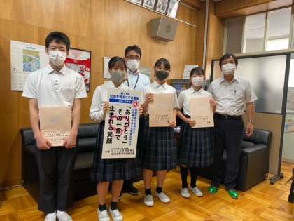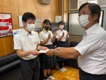社会を明るくする運動の作文と標語の優秀佳作の表彰を、会長からうけています。誇り高きシーンです。