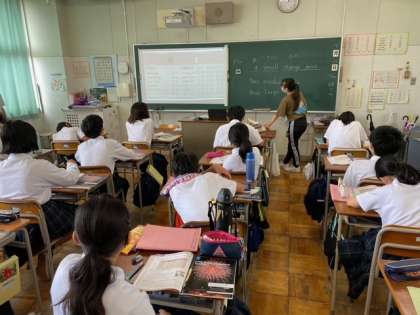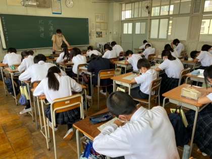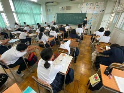英語はドリンクをショップにドルで買いに行く学習です。国語は漢字の小テストです。数学は1次式の計算を学習しています。