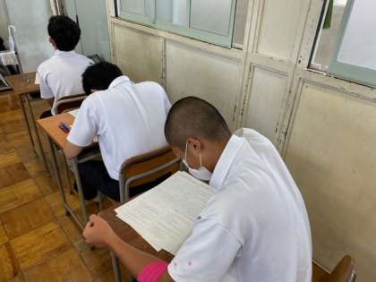 2年生の国語の課題テストです。問題にしっかり向き合っています。