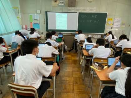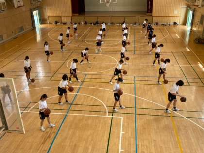 体育女子はバスケットボール、男子は水泳、理科は地すべりについての調べ学習です。