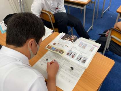 1年生理科の振り返り、2年生社会の振り返り、3年生音楽の振り返りの様子です。文章作成能力が少しずつ向上している様子がよくわかります。