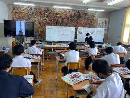 社会はキリスト教の学習、美術は昔の楽器などの座学、国語は枕草子の学習です。