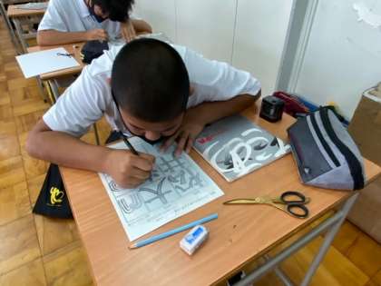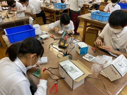3年体育でタブレットを使った学び、1年美術のレタリング、2年技術のはんだ付けの集中している姿がいいです。