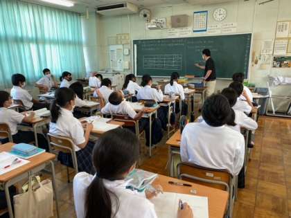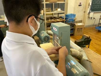 英語は3人称の学習、数学はプリンとケーキの文章題、技術は箸づくりです。
