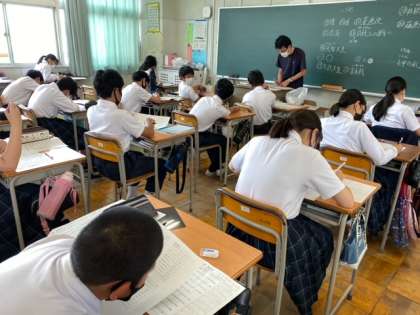 音楽はサンタルチアの楽曲を深めています。英語はインタビューテスト、社会は単元テストをしています。