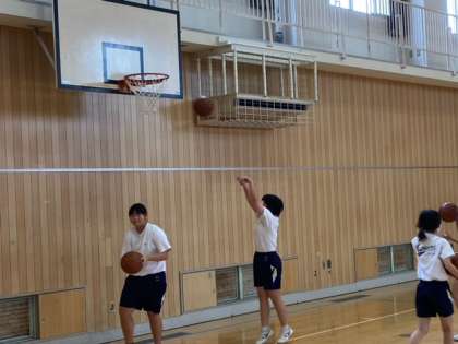 体育女子はバスケのシュート練習、数学はルートの計算、社会は国民の権利の学習です。