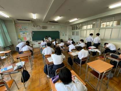 体育女子はバスケ、数学は教え合い学び合い、社会はいよいよ日本国憲法の学習です。