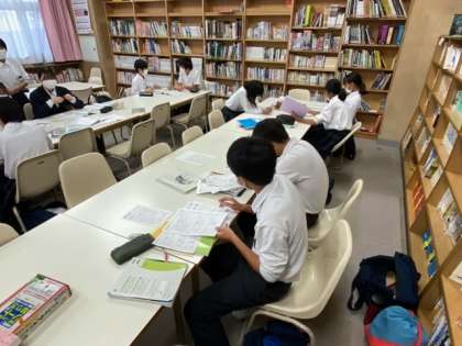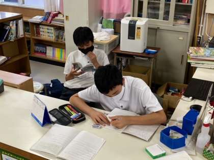 楽しく教え合いながら中間テストの勉強をしています。楽しく学べていますね。