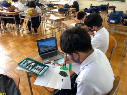 美術部の生徒がタブレットに写し出す風景を描いている姿に感動しました。素晴らしいです。