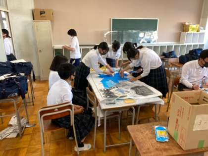 体育大会学級旗づくりです。