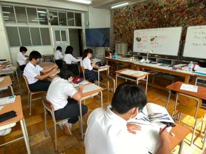 美術はアイデアを考えています。英語は文法の学習、社会は戦国時代の調べ学習です。