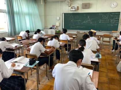 英語は絵を見て英語で答える学習、数学は図形の角度の学習、理科は原子の学習です。