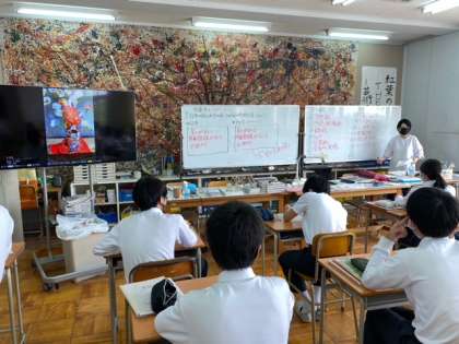 数学は二次関数の学習、国語はフロン規制の物語、美術は作品の考案をしています。
