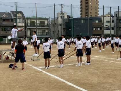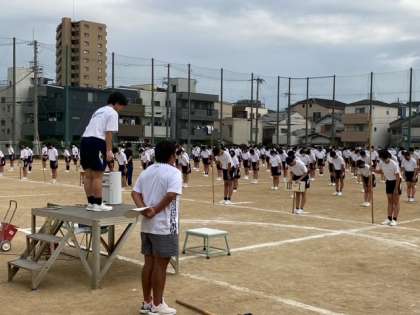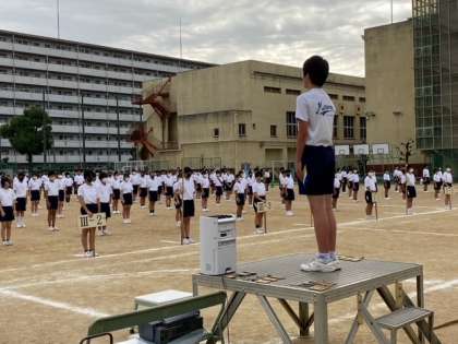 寒空のもと、規律正しく素晴らしい開会式の練習です。全校生徒が集まるのは本当に久しぶりです。それだけで感無量な光景です。やっぱり中学校はこれでないといけません。