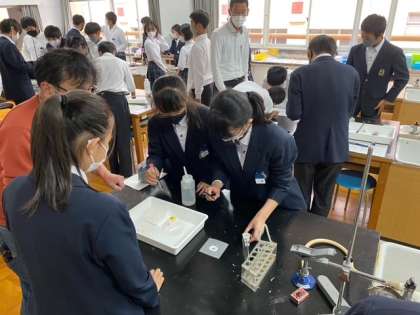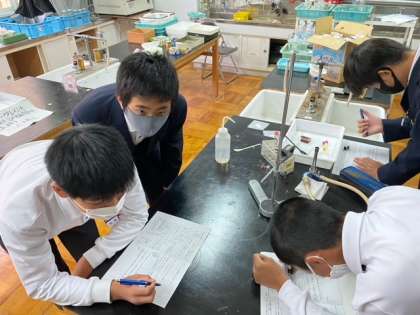 理科は化学実験、英語はグループ学習です。