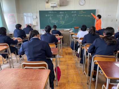 理科は炭酸水素ナトリウムの分解、美術は作品のデザイン、社会は朱印船貿易の学習です。