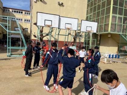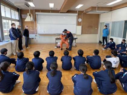 消火器による消火活動、タイツやサランラップを使った応急処置、ロープでの救助活動です。10年先に防災リーダーとして育ってほしいです。