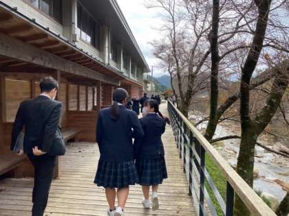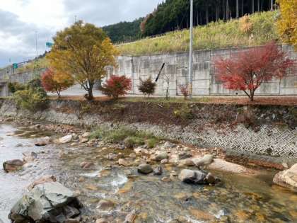 ログハウス調のトイレに紅葉、綺麗な川、自然が素晴らしいです。