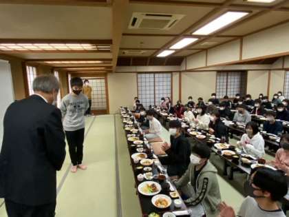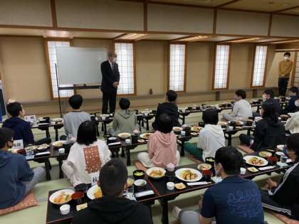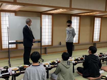 清流荘の山田様に、入館のあいさつをしました。2日間よろしくお願いいたします。