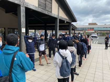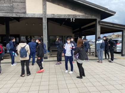 1組の皆さんと合流しました。14年目の風紋発生装置です。中に扇風機があって風紋ができる様子が分かりやすかったです、