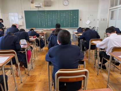 社会は寛政の改革、国語は1:00年後の水の話、数学は三角形の合同証明です。修学旅行に行っていましたので、久々に1年生と2年生の生徒たちの笑顔を見て、気を引き締めて学校づくりに集中しょうと改めて思いました。明日は奈良公園に遠足です。寒いけれどいい想い出づくりをしてほしいです。