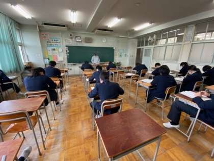 文章を読んで読解する能力、文章を作成する能力を調査しています。この検定は、校長経営戦略支援予算を使って、これから生きて働く力として生徒たち一人ひとりに身につけてほしいと考えました。これまでの点数で評価する学力に変わって、読む力と文字で表現する力は、高校や大学、社会人になっても必要な能力になります。真住中学校で初めて実施するので、結果が楽しみです。1月に2年生でも実施します。