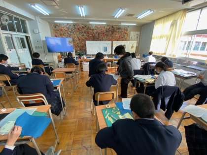 理科と社会は単元の振り返り、美術は作品づくりです。頑張っています。