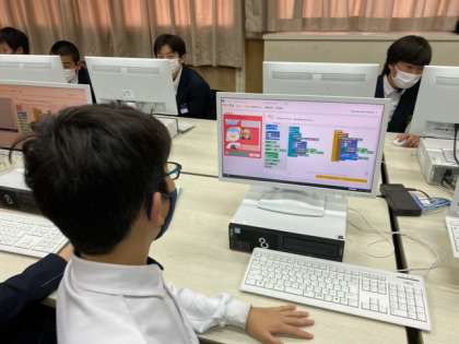 2年技術のプログラミング学習、社会のグループワークの様子がすごくポジティブです。